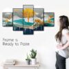 Saumic Craft Presents This Set Of 5 Amazing Paintings For Your Wall . The Painting Will Completely Change The Atmosphere Of The Room Whire It is Placed . The Paintimg Is Made On Heavy Wooden Board And Has A Digital UV Coating On It Which MAKES It Very Easy To Clean . Pricing Of The Product Is Made Very Reasonable From Our Brand As Per The Quality We Are Providing To Our Customers, We Assure That You Will Not Regret Your Purchase, Saumic Craft Is Well Known for Its After Sale Services And In Case If You Feel Some Problem With Any Of Our Product Than You Can Replace It For Free With No Additional Cost . This painting offers a stylish look to your wall as this piece includes three themes it is vastu and also have the essence of abstract and modern art which makes this peice unique and stylish . The 5 pieces wall painting is made with high-quality material, the HD quality print looks fantastic and bright it will not fade easily. With just few simple steps you can mount it to the wall. Thank You For Yor Purchase